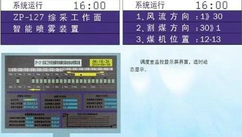 例如綜放工作面智能定位噴霧降塵系統(tǒng)工作面監(jiān)控信息包括:采煤機當前的所在位置、允許方向、架間噴霧點道數(shù)、割煤道數(shù)、當前移架和放煤及噴霧道數(shù)、生產(chǎn)允許圖標及近3個月內(nèi)的生產(chǎn)運行記錄等。